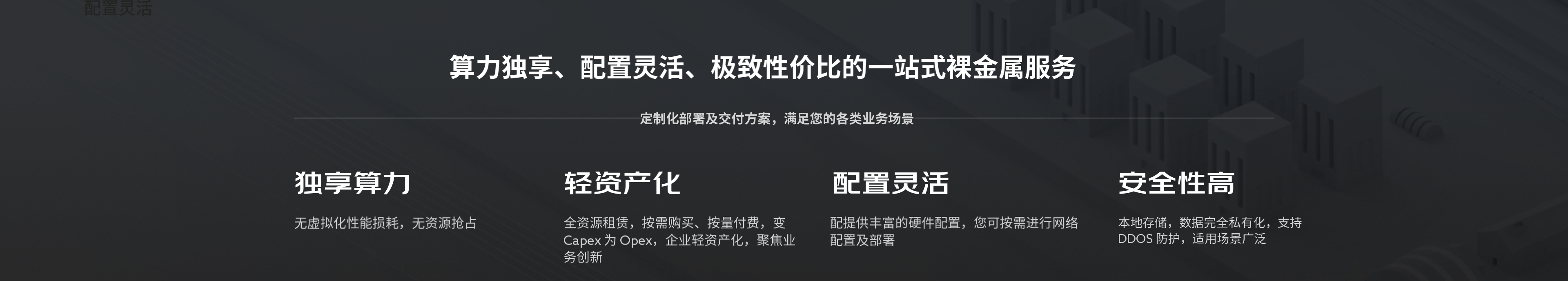 在中云托管服务之上,提供裸机服务器、交换机等 IT 设备的使用服务,让您即刻拥有高品质的硬件与原厂服务(或自维保服务)。为您提供从数据中心到应用优化的硬件方案与一站式服务。